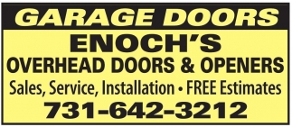 GARAGE DOORS ENOCH’S OVERHEAD DOORS & OPENERS Sales, Service, Installation • FREE Estimates 731-642-3212