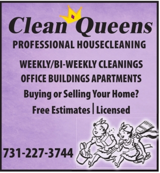 Clean Queens PROFESSIONAL HOUSECLEANING WEEKLY/BI-WEEKLY CLEANINGS OFFICE BUILDINGS APARTMENTS Buying or Selling Your Home? Free Estimates | Licensed 731-227-3744