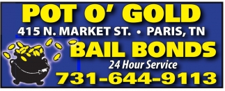 POT O’ GOLD 415 N. MARKET ST. • PARIS, TN BAIL BONDS 24 Hour Service 731-644-9113